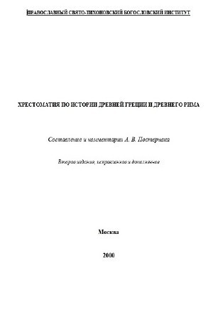Основная задача данной хрестоматии – познакомить студентов ПСТБИ с основным кругом источников по античной истории. Для того чтобы понять религиозное воззрение и нравы античных людей, а также их поведение в определенных ситуациях.