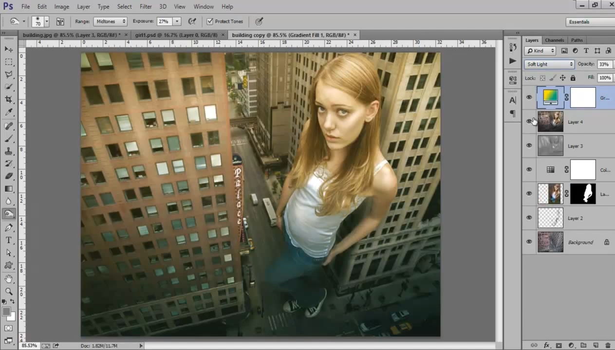 Фото-манипуляции в Photoshop - Девушка и небоскребы (2015)