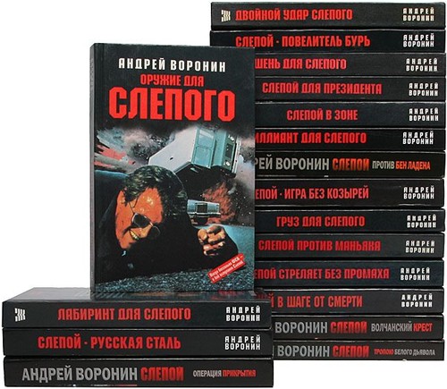Алкоголик 1. Алкоголик 2. Группа крови 3. Эхо дуэли Атаман Кровь за кровь Тест на прочность Банда 1. Наперегонки со смертью 2. Между жизнью и смертью 3. Марафон со смертью 4. Бросок аркана 5. Смерти вопреки Демон войны Антиловушка Инкаcсатор 1. Один шаг между жизнью и смертью 2. Однажды преступив закон 3. Высокое напряжение 4. Фаянсовый череп 5. Я вернусь 6. Утраченная реликвия Всадники апокалипсиса До седьмого колена Золотая лихорадка Рискованная игра Слезы из черного золота Страшный рассказ Черные рейдеры Инструктор 1. Время вспомнить все 2. Инструктор спецназа ГРУ 4. Над законом 5. Тень прошлого 6. Отражение удара 7. Проводник смерти 8. Последний аргумент закона 9. Без единого выстрела 10. Тень каннибала 11. Последний самурай 13. Остров смерти 15. Мертвая хватка Глубина падения Кровавый реванш Княжна Мария 1. Русская княжна Мария 2. Жди меня 3. Ведьма Черного озера 4. Рукопись Платона Комбат 1. Комбат 3. Комбат не ждет награды 4. Комбат в западне 5. Комбат против волчьей стаи 6. Добро пожаловать в Ад 7. Кровавый путь 8. За свои слова ответишь 9. Игра без правил 11. Личный досмотр 12. Ордер на возмездие 13. Закон против тебя 14. Никто, кроме тебя 15. Точка кипения Беспокойный За личное мужество Механик для легионера Му-Му Таможня дает добро 1. Пощады не будет никому 8. Смерть знает, где тебя искать 9. Ищи врагов среди друзей 10. Победитель всегда прав 11. Из любви к искусству 12. Сквозь огонь и воду 17. Пылающая башня Ночной дозор 1. Ночной дозор 3. Умереть - непозволительная роскошь Панкрат 1. Панкрат 3. Ставки сделаны Пророк 1. Пророк 2. Голос ангела 6. Кровавые жернова Слепой + Первое дело слепого. Проект Ванга + Тост за победу 1. Слепой стреляет без промаха 2. Слепой против маньяка 3. Лабиринт для Слепого 4. Груз для Слепого 5. Слепой в зоне 6. Слепой для президента 7. Мишень для Слепого 8. Двойной удар Слепого 9. Оружие для слепого 10. Большая игра Слепого 11. Слепой в шаге от смерти 12. Убрать Слепого 13. Возвращение с того света 14. Ловушка для Слепого 15. Петля для губернатора 16. Груз 200 17. Шальные деньги 18. Игра без козырей 19. Формула смерти 20. Кроссворд для Слепого 21. Бриллиант для Слепого 22. Разведка боем 23. Повелитель бурь 24. Число власти 25. Русская сталь 26. След тигра 27. Умереть, чтобы воскреснуть 28. Мертвый сезон 30. Антимавзолей 32. Троянская тайна 33. Слепой против бен Ладена 34. Тайна Леонардо 35. Могила тамплиера 36. Танковая атака Живая сталь За гранью Защитнику свободной России Исполнение приговора Кровь сталкера Операция «Атлантический циклон» Приказано выжить Спасатель Жди меня, и я вернусь Серые волки Спецназовец Без права на ошибку (нет) Власть закона (нет) Враг (нет) Взгляд снайпера (нет) Глаз змеи (нет) Сошествие в ад Татуировка дракона (нет) Точка дислокации (нет) Шальная пуля (нет) Эффект домино (нет) Вне серий Бык в загоне Конфликт местного значения Последнее письмо пижона Филин